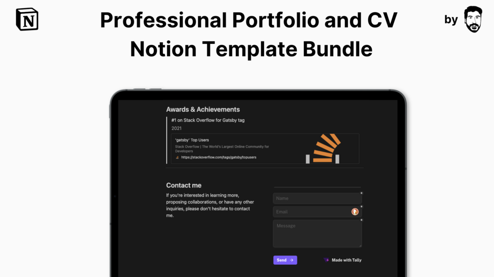 Introducing the Professional Portfolio and CV Notion Template Bundle – a combination of the best-selling Portfolio Website Notion Template and CV Website Notion Template. With this bundle, you'll get everything you need to take your career to the next level and impress potential employers and clients.